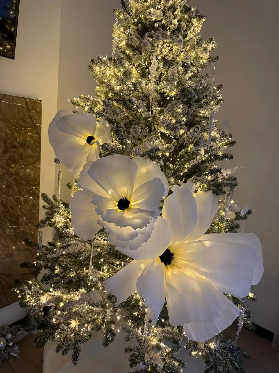 Новорічні великі квіти стануть розкішною прикрасою вашої ялинки та додадуть святковому декору витонченості й об’єму. Ніжні пелюстки чудово поєднуються з будь-яким стилем оформлення — від класики до мінімалізму.