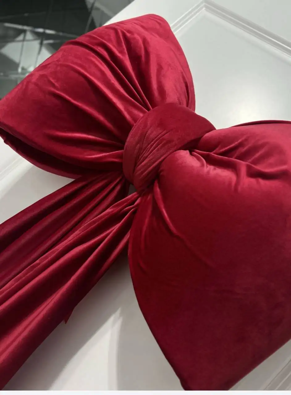 Бант виконаний з тканини велюр. Може бути в 3 кольорах: білий ,червоний , шоколад.